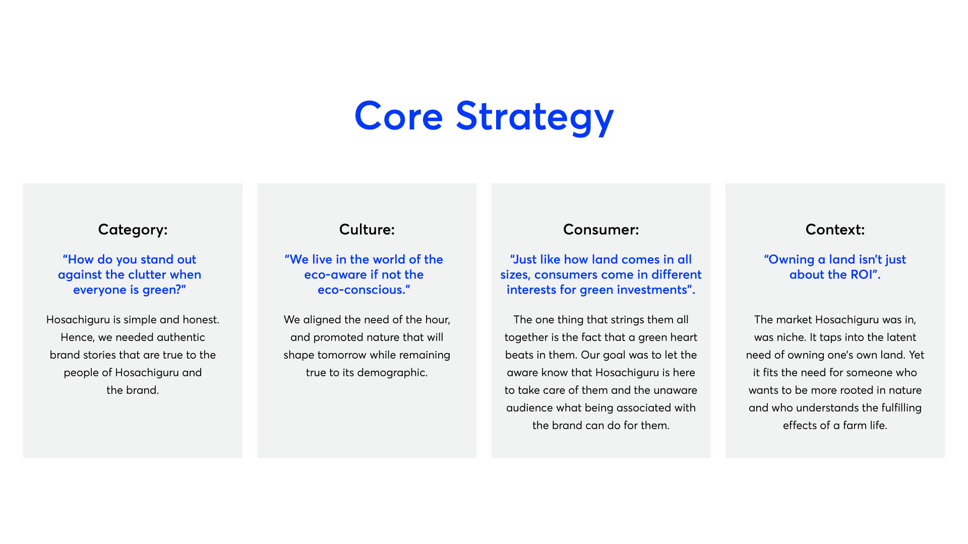 Since 2021, Co&Co has been the trusted branding and marketing partner for Hosachiguru, a visionary managed farmland business empowering Bengaluru’s urban residents to reconnect with nature. We rebranded, a pioneer in the managed farmland business, and made it future ready - through strategic storytelling, design innovation, and data driven campaigns, we’ve helped Hosachiguru evolve into a resonant brand that blends cultural authenticity with modern aspirations. This collaboration spans core branding initiatives and targeted individual projects, driving measurable growth in engagement, lead conversion, and customer loyalty.